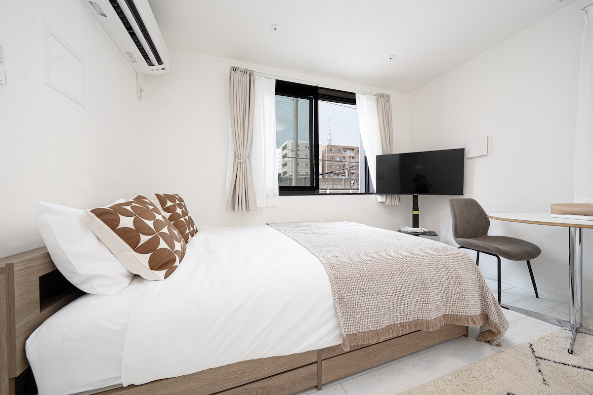 Sumida-ku, Tokio | Elegante casa en el cuarto piso en la tranquila esquina de la calle | Estilo occidental/cuerpo combinado de tatami japonés | Cerca del templo Asakusa y Skytree Una tranquila casa rural se esconde en un rincón de una ciudad bulliciosa. Entra en este apartamento de estilo japonés y occidental en el cuarto piso, como si estuvieras de vuelta en tu propio pequeño mundo. Distribución de la habitación En esta elegante habitación 401, el dormitorio es único y satisface las diversas necesidades de la vida. Equipado con dos camas dobles de 1,4 m de ancho y 2,0 m, suaves y cómodas, la disposición fresca y moderna hace que sea fácil entrar por la puerta. · Espacio luminoso y cómodo con sofá cama plegable abatible de 1,4 m de largo y 2 m. La disposición del sofá cama se ajustará en función del número de huéspedes: si sois más personas, prepararemos el número correspondiente de futones con antelación; si el número de personas es pequeño, se utilizará como espacio de descanso.Para prepararnos mejor, indícanos con antelación cuántos huéspedes se alojarán.Gracias por tu colaboración y comprensión. Cuando regreses por un día, acuéstate en la cama o en el sofá, disfruta de la vista nocturna del Skytree mientras disfrutas de la vista nocturna del cielo, es una gran relajación de tu cuerpo y mente. Cocina de planta abierta, equipada con utensilios de cocina básicos, adecuada para cocinar una comida casera sencilla de vez en cuando Para evitar alergias u olores, no hay condimentos en la habitación, prepárelos usted mismo Baño Baño seco y separado, mantenerlo limpio y limpio Artículos de aseo básicos, como cepillos de dientes desechables, secadores de pelo, etc. Lavadora con función de secadora, sin necesidad de preocuparse por la ropa para secar para negocios o estancias largas. Comodidad suave, superalimentos a poca distancia
