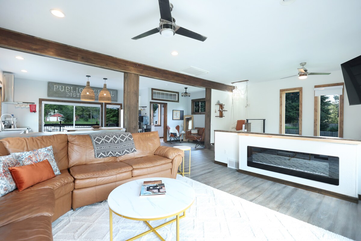 Resting on Star Lake and tucked into the north woods, this tiny home offers the tranquility you need to completely decompress. The Sasquatch Shores cabin is right on Star Lake, a quiet no wake lake that gives you the peace and quiet you want. Watch the sunset off of the dock or cast a line into the water! The cabin is also situated right on the ATV trail. The main offers a King sized bed and the guest room offers a Queen/Twin Loft bed. There is also sectional couch as a sleeping option!