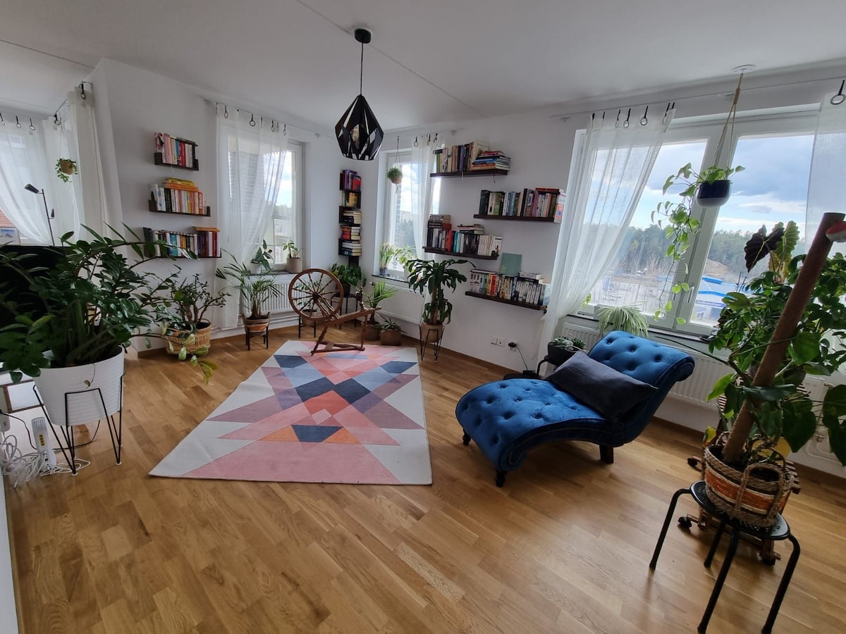 ¡Casa luminosa y espaciosa con naturaleza a la vuelta de la esquina! Hay espacio para toda la familia con tres dormitorios, una gran cocina y sala de estar, así como dos baños. Cuarto de lavado con lavadora y secadora. ¡La cocina tiene electrodomésticos modernos y cafetera de lujo para el conocedor! La casa tiene una terraza y un patio acristalado, así como un jardín frente a una ladera con pinos. Ya sea que quieras sol o sombra, ¡estarás satisfecho en esta casa! Puedes estacionar tu auto en la entrada y la parada de autobús está a 100 metros de distancia.
