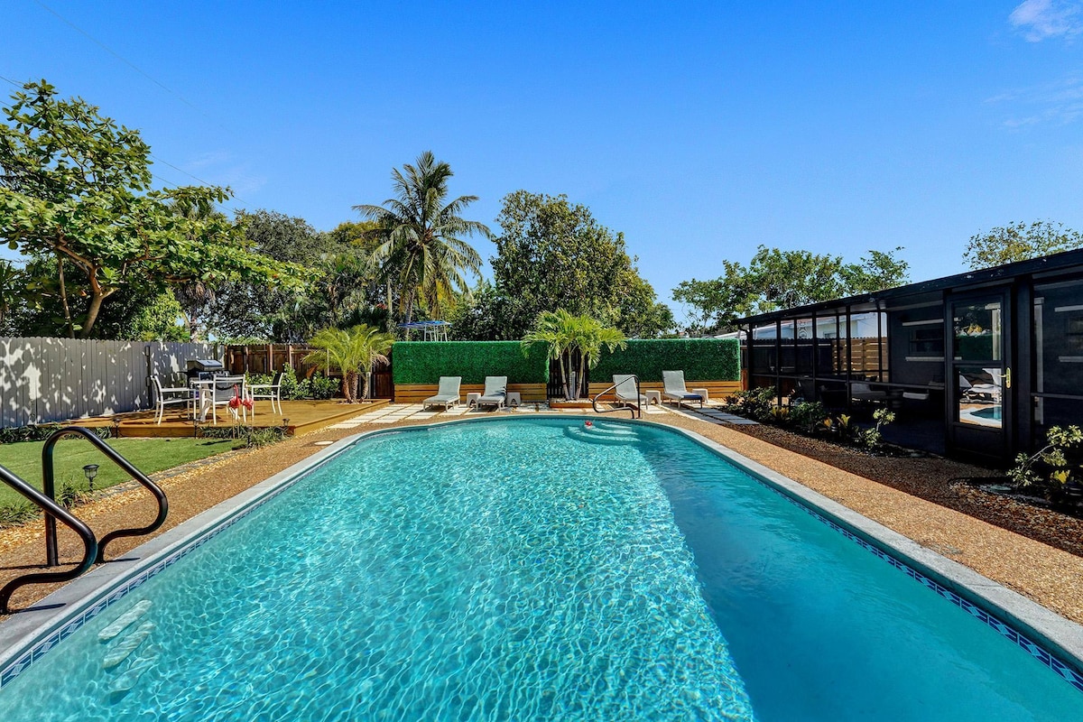 ¡Escápate a nuestro impresionante oasis de toda la casa! Disfruta de unas vacaciones cómodas en una cama tamaño king con beneficios de trabajo remoto. - Gema de 2 dormitorios y 2 baños. - Bañera de hidromasaje en un baño. - Patio trasero privado - Piscina de agua salada CLIMATIZADA. - A menos de una milla de Wilton Drive. - 🏋️ Acceso GRATUITO a Crunch Fitness - A menos de 3 millas - Playa Sebastian de Fort Lauderdale - Fácil acceso al centro de la ciudad, a Las Olas y a River Walk. - Interiores con mucho estilo - Perfecto para 6 personas. - Con todos los PERMISOS Y LICENCIAS para su tranquilidad. ¡Reserva tu escapada hoy mismo!