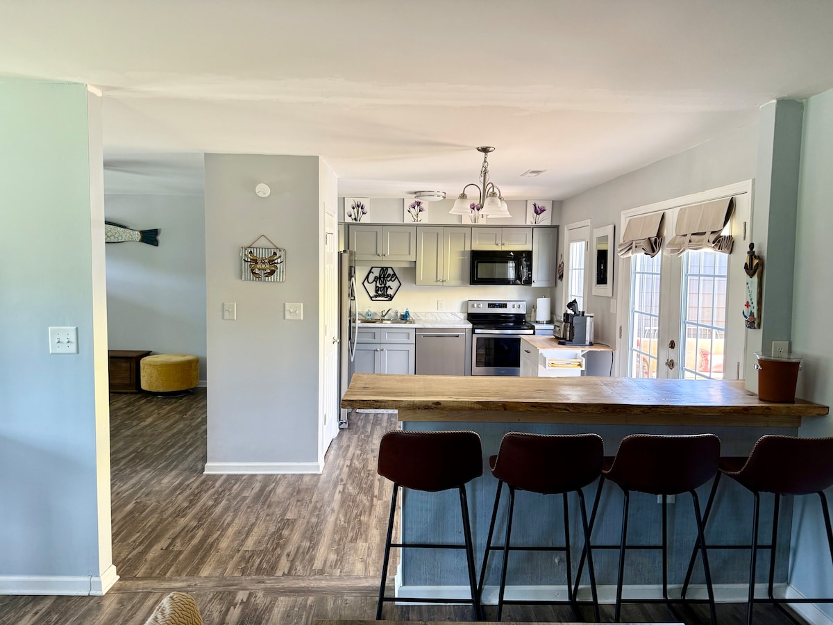 Una relajante escapada costera te espera en The Surf Shak, una casa restaurada de 2 dormitorios y 2 baños en Murrells Inlet, Carolina del Sur. Escapa del bullicio de la vida urbana en este pintoresco pueblo de pescadores, a solo 10 millas al sur de Myrtle Beach. A menos de una milla de los deliciosos restaurantes del Marsh-walk, Beaver Bar y SBB. Un lugar perfecto para familias, amigos, parejas y mascotas.