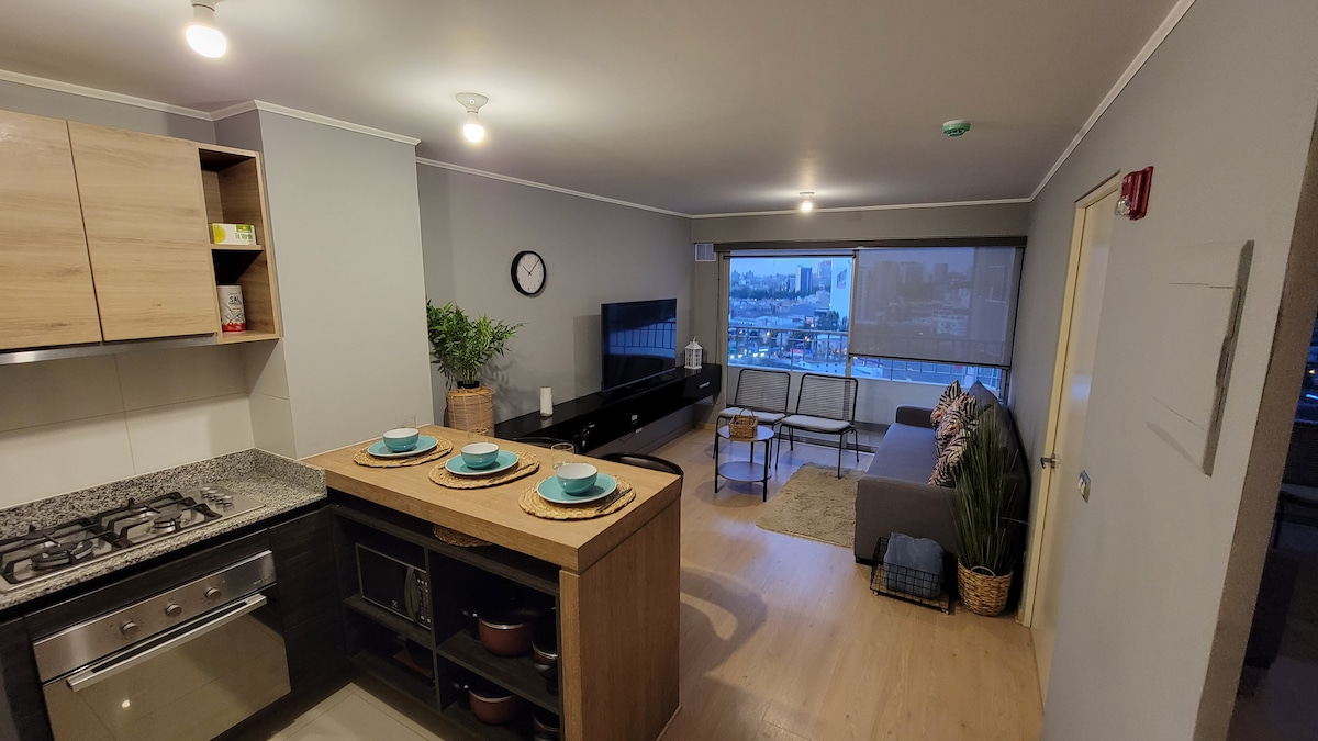 Disfruta de una estadía moderna y tranquila en un departamento con excelente luz natural, ideal para descansar o trabajar con total comodidad. Perfecto para quienes buscan una experiencia práctica, segura y sin estrés en la ciudad. Aquí encontrarás el equilibrio ideal entre funcionalidad, estilo y tranquilidad. Ubicado en un edificio moderno con excelentes áreas comunes, este espacio ha sido diseñado para ofrecerte comodidad, funcionalidad y un ambiente relajante desde el primer momento.