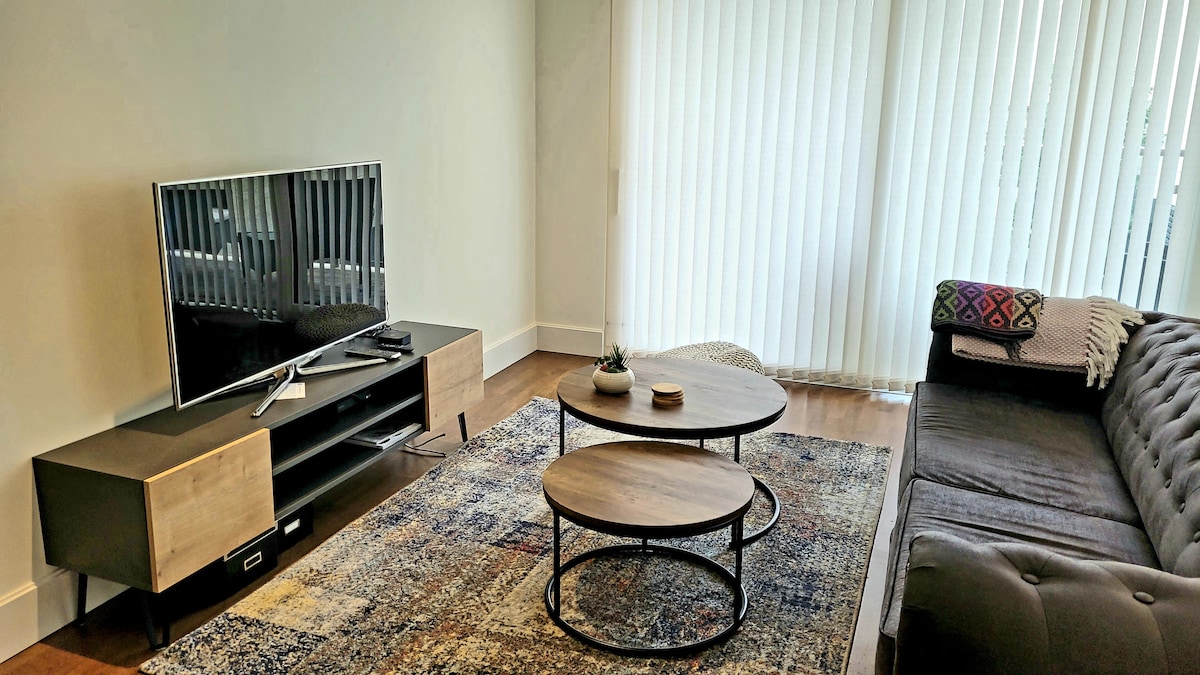 - Ideal para familias, viajeros de negocios o grupos - Dormitorio principal con cama tamaño king, baño y espacio de trabajo; segundo dormitorio con cama tamaño king o dos camas individuales - Sala de estar y comedor de diseño abierto con televisor inteligente y cocina completa que incluye lavavajillas - Balcón privado, lavadora/secadora y amplio espacio de almacenamiento - Acceso seguro con control remoto Salto y electrodomésticos de bajo consumo para una estancia cómoda