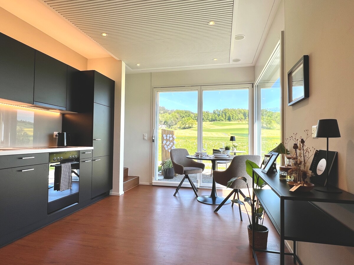 Acogedor apartamento de 2,5 habitaciones con un gran jardín y vistas impresionantes de Rigi, Pilatus, Eiger, Mönch y Jungfrau. Tranquilamente ubicado en Wauwil, situado en el centro de Suiza, a 10 minutos de la estación de tren. Ideal para excursiones, relajación y naturaleza. Cama grande de somier (200x210 cm), sofá cama para 2, estacionamiento, totalmente equipado. ¡Perfecto para relajarse y disfrutar!