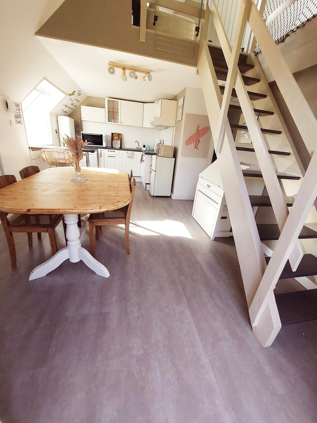 Casa de 104 m2 a 100 metros de la playa de Surtainville. Desde la terraza se oyen las olas. Amplia casa con 3 dormitorios, incluida una suite principal en la planta baja. Arriba 2 habitaciones y un baño y un inodoro separados. Vacaciones escolares reserva semanal. julio/agosto reservaciones de sábado a sábado únicamente. excepto vacaciones escolares fórmula fin de semana: llegada el viernes a partir de las 14: 00 y salida el domingo hasta las 17:00. fin de semana de puente (mayo y junio) mínimo 3 noches.