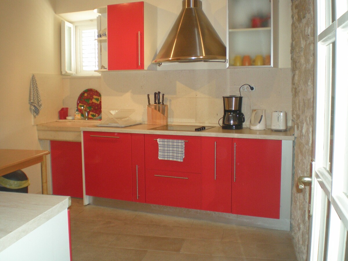 Looking for peace and nature? This is a place where you can enjoy the peace and nature in a house with a swimming pool. * large private pool (32 m2), barbecue, parking,garden * one bedroom with double beds (180x200cm) * one bedroom with one bed (90x190cm) * one bedroom with two single beds (90x190cm) * two bathrooms with shower * Toilet with laundry * dining room + fully equipped kitchen * dining room with access to the pool * large terrace overlooking the pool and sea * Wi-Fi, bed linen, towels