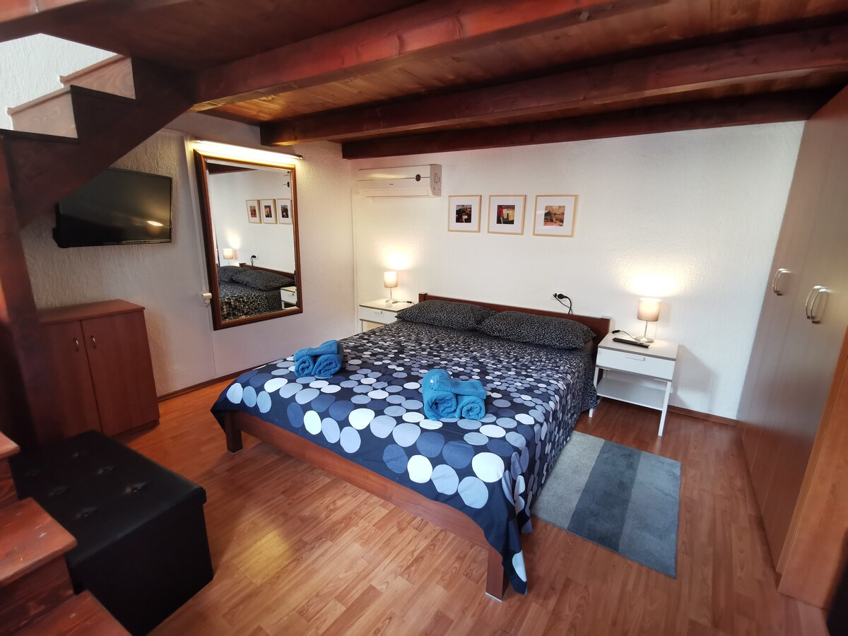 El departamento tiene capacidad para una a cinco personas. Está bien equipado para una estancia de placer. Está situado en el primer piso de una casa familiar y consta de dos dormitorios, una cocina, una sala de estar, un baño con un inodoro, un balcón, una terraza y un estacionamiento. El apartamento está equipado con cocinero ( electricidad), un owen, una nevera, un horno microondas, una máquina de café, un televisor, una radio, una televisión vía satélite, Internet inalámbrico, aire acondicionado, calefacción central, ropa de cama y toallas,lavadora.