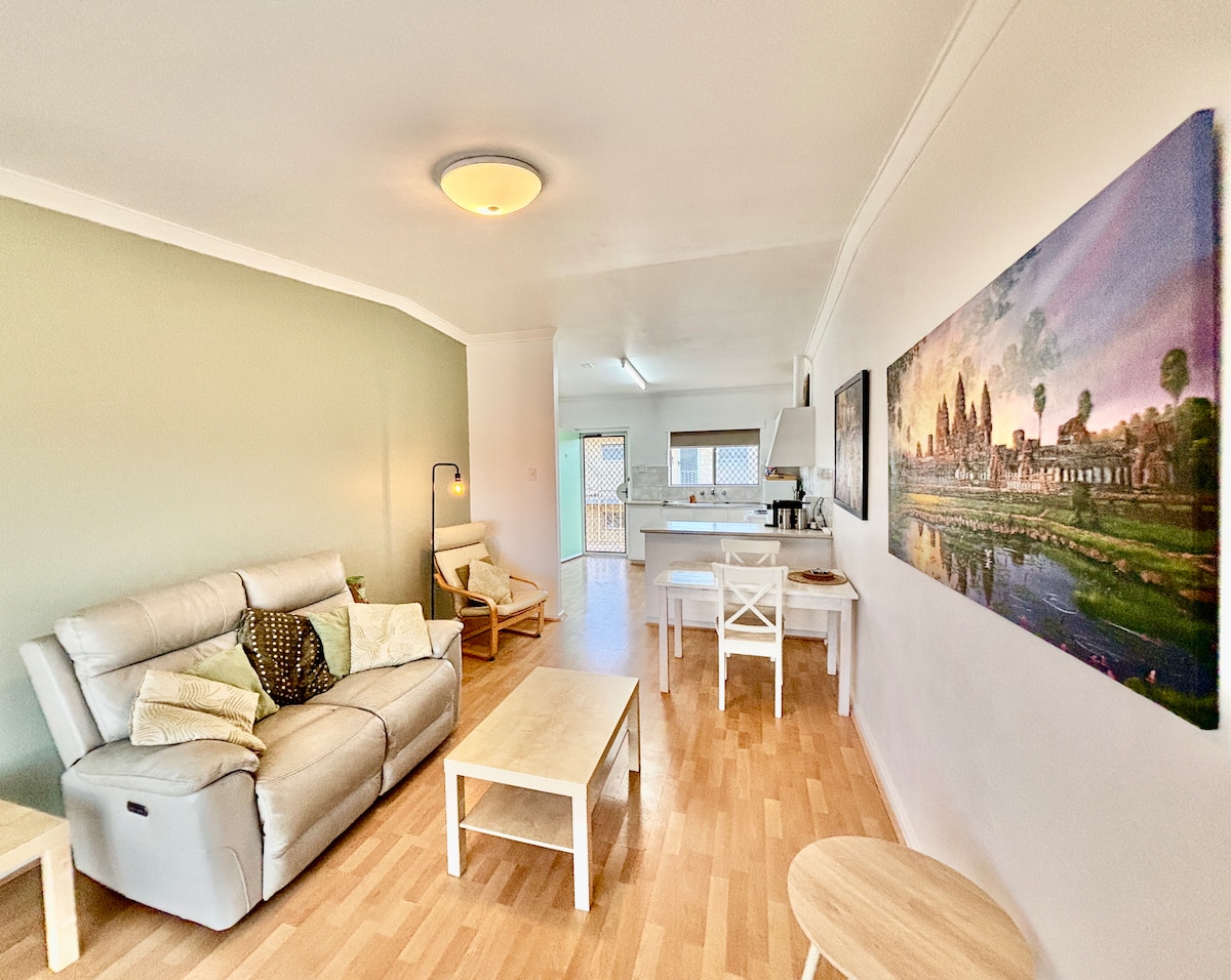 Moderno apartamento exclusivo en planta baja, (dentro de una casa de dos pisos) Excelente ubicación en Como, cerca de South Perth cafe Strip y Perth City, con buen transporte cerca. Ideal para viajeros de negocios y de placer / vacaciones, no te decepcionarás. Nuestro departamento en planta baja es tu hogar desde casa. Las habitaciones están bellamente equipadas con todo lo que puedas desear, sábanas de lujo, tranquilidad, privacidad, electrodomésticos europeos en tu propia cocina, lavandería, tus propias llaves y estacionamiento.