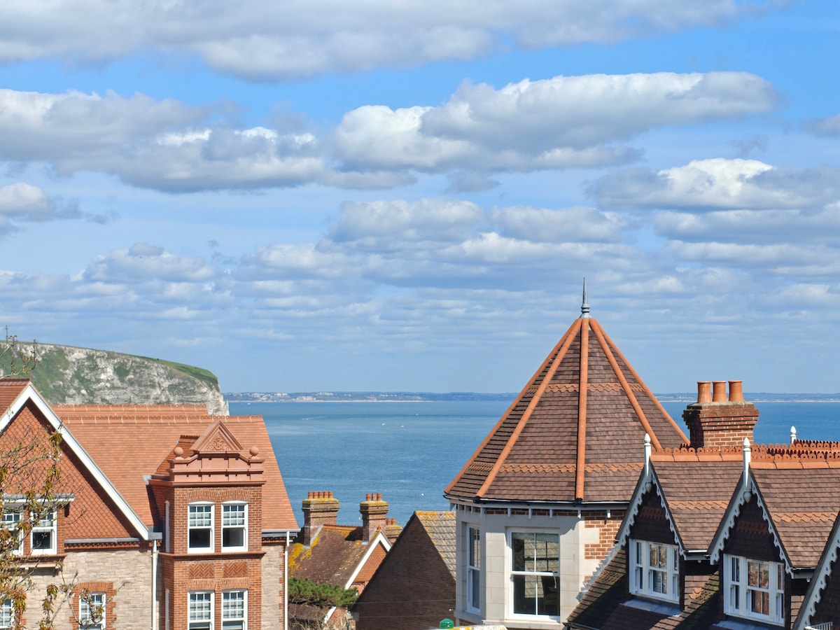 Amplio y cómodo apartamento en el último piso de un edificio victoriano de ladrillo rojo con vistas a Swanage desde todas las ventanas. La gran terraza de la azotea es un lugar fantástico para disfrutar de una copa de vino y de la puesta de sol. Con fantásticas vistas al mar, está totalmente equipado con todo lo necesario para una estancia relajante en la encantadora ciudad costera de Swanage. Con una ubicación ideal, a 200 metros del mar y del paseo marítimo, y cerca de autobuses, pubs, tiendas y restaurantes. Aparcamiento reservado para un coche.