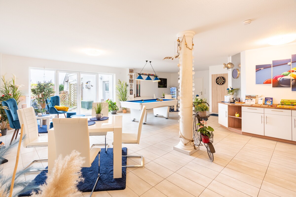 El apartamento vacacional "Unteres Apartment 110qm" en Mönkebude ofrece el entorno ideal para vuestra estancia cerca de la laguna de Szczecin. El alojamiento de 110 m² consta de un salón con sofá cama para 2 personas, una cocina, 2 dormitorios y 2 baños, y tiene capacidad para 5 personas. Entre las comodidades se incluyen Wi-Fi, TV, cafetera y chimenea. El punto destacado del apartamento es la terraza privada y cubierta. Además, hay una terraza abierta que invita a comer y relajarse.