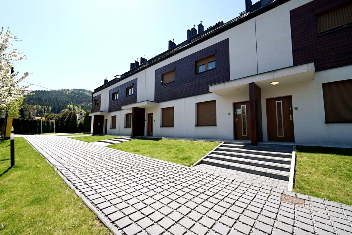 Para tu relajación, ofrecemos un apartamento de 62 metros cuadrados con dos dormitorios (uno con una cama de 160x200, el otro con dos camas individuales de 80x200), un sofá cama en el salón y una sauna privada de infrarrojos en el baño. El salón tiene una chimenea de gas, una mesa para 6 personas y una cocina totalmente equipada (cafetera a presión, lavavajillas, microondas, horno, ollas y vajilla). Desde las ventanas de cada habitación hay una vista maravillosa de Skrzyczne. El apartamento dispone de 2 plazas de aparcamiento privadas.