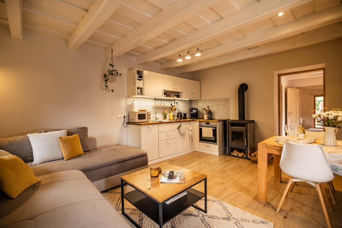 El Káli Kisház es una encantadora casa de piedra reformada en el centro de Kővágóörs. La hemos amueblado para que se adapte a la casa y sus alrededores. En la espaciosa sala de estar, los huéspedes pueden disfrutar del encanto y la calidez de la casa mientras se sientan junto al fuego crepitante de la estufa de azulejos.