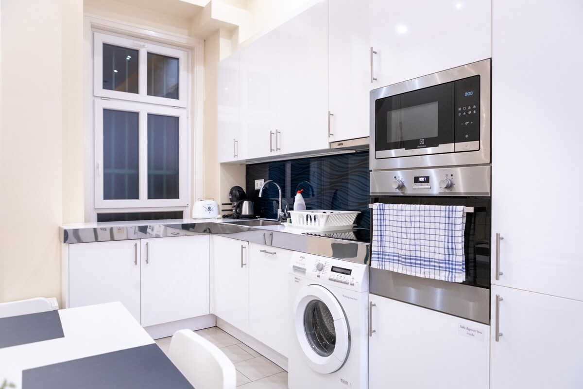 Apartamento de lujo de 2 dormitorios y 2 baños en el centro de Budapest Elegante apartamento con muebles de primera calidad, amplia sala de estar, comedor, cocina totalmente equipada e internet de alta velocidad. Rodeado de los mejores restaurantes, cafés y bares: la base perfecta para disfrutar de la ciudad. 🐾 Se admiten mascotas: solo un perro, tarifa de €30 por mascota. 🅿️ Estacionamiento privado en garaje a 150 m del apartamento. Acceso gratuito al spa y al gimnasio (a 600 m) para reservas de más de €150 por noche a partir de 2 noches. 🛗 2.ª planta con ascensor