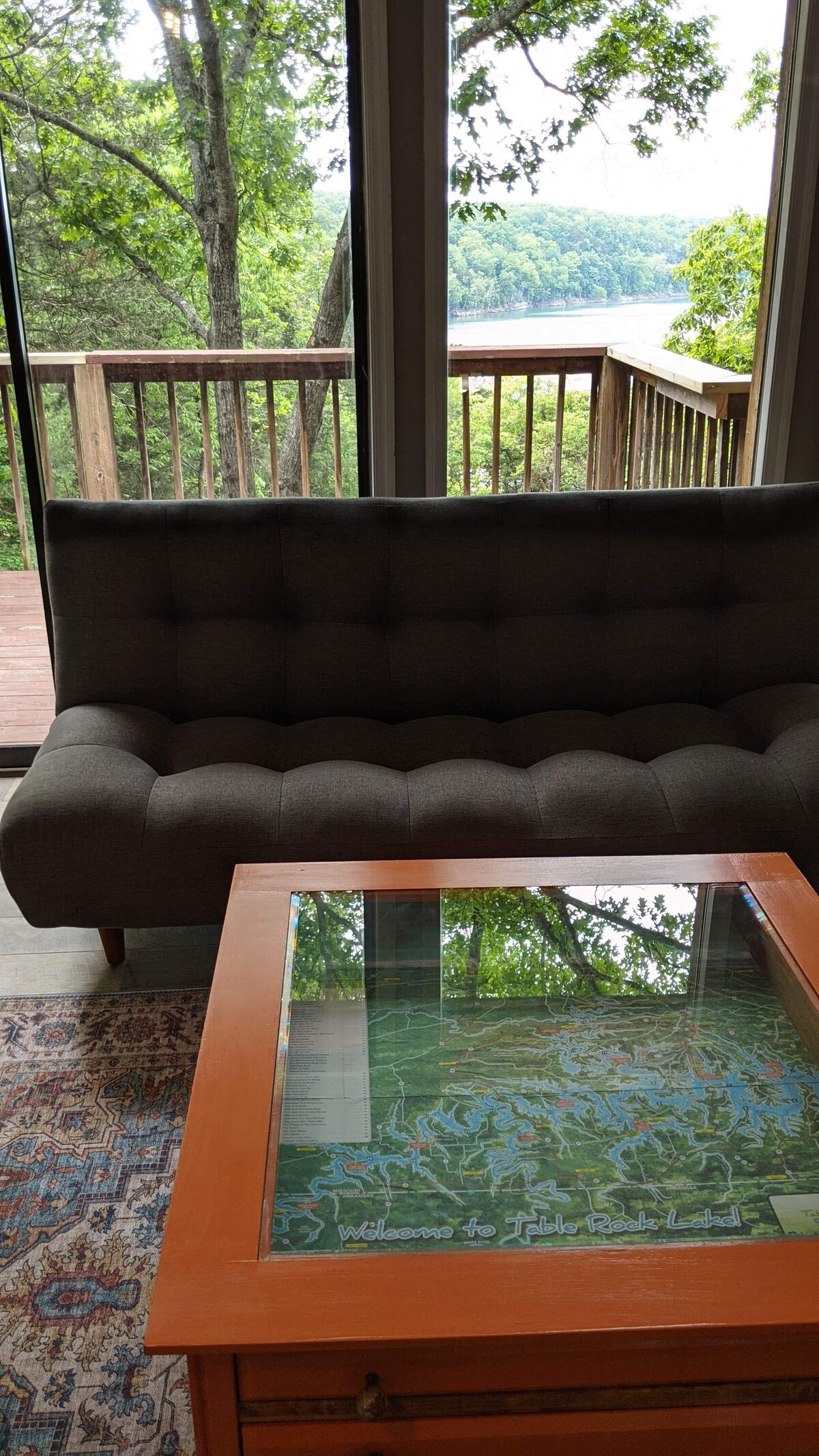 Due to Owner Change, please book any future stays - starting in August -at the following listing: airbnb.com/h/treehouse-with-lake-view-n Come to enjoy this Lake Cabin that has 3 bedrooms, 2 baths, 2 spacious living rooms with smart TVs in each & Dish service. Wood burning fireplace on the 1st floor, library & board games on the 2nd. Relax & enjoy a hot or cold beverage on a rooftop patio with the panoramic view of Table Rock Lake & a beauty of the Ozarks.