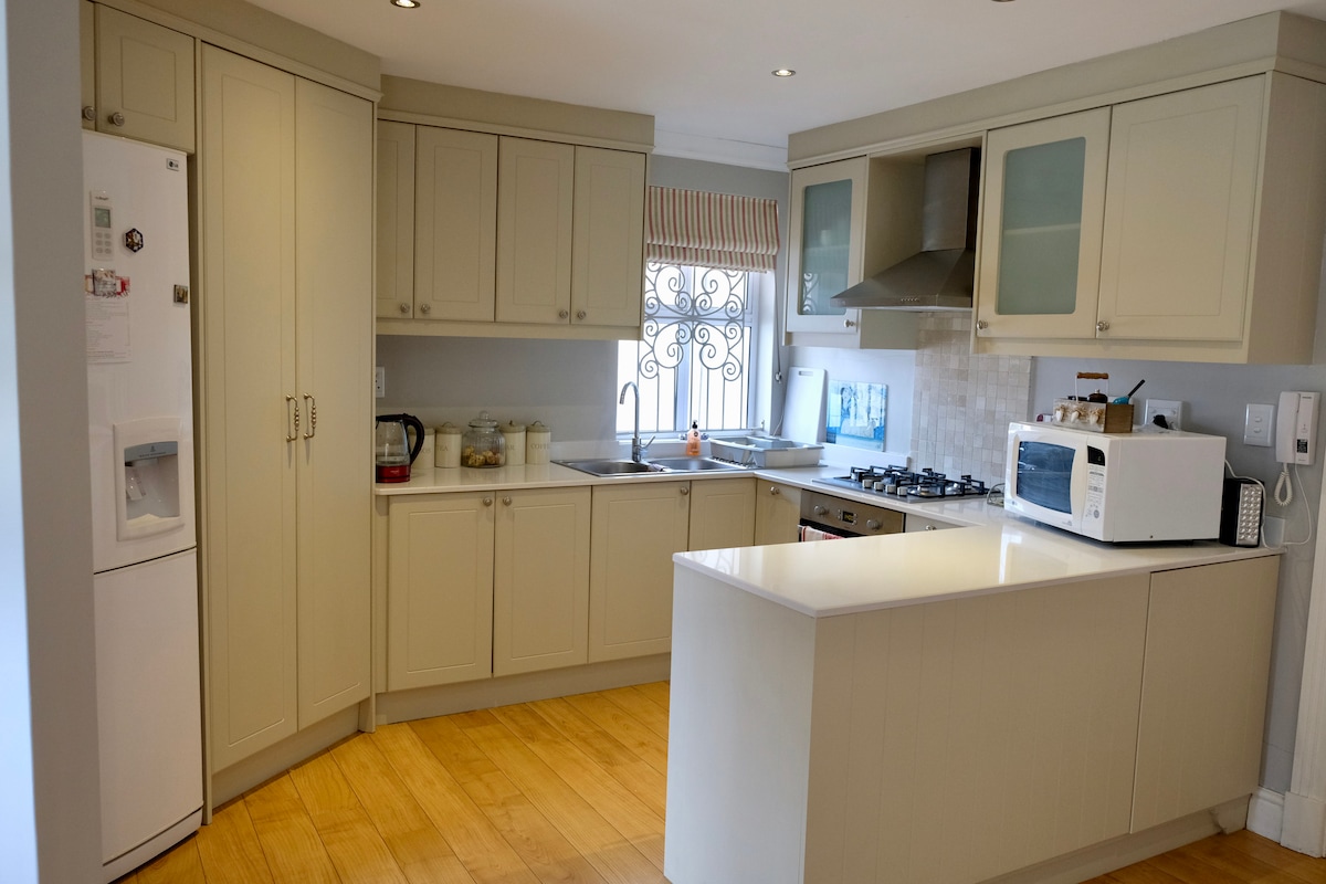 Casa grande, espaciosa y cómoda situada en jardines establecidos. Todo en un solo nivel, la casa es espaciosa y luminosa, con techos altos y un maravilloso flujo interior y exterior desde las amplias salas de estar hasta la piscina, una gran zona de entretenimiento en el patio, barbacoa y chimenea. La casa se encuentra en un amplio terreno con hermosas vistas a la montaña del Parque Nacional de la Montaña de la Mesa. Para reservas mensuales, el uso de Toyota Fortuner es una opción por un coste adicional.