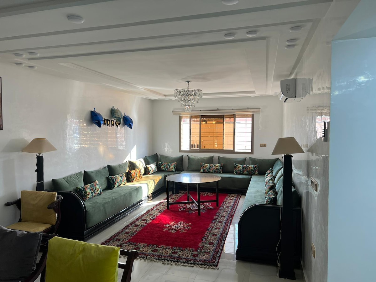Perfecto para familias, parejas o grupos de hasta 4 huéspedes como máximo. Aparcamiento gratuito en el edificio, seguro, cómodo y perfecto para los huéspedes con coche. Apartamento bien cuidado con 2 dormitorios, acogedora sala de estar, cocina equipada, baño grande y wifi. Tiendas, farmacia, restaurantes y supermercado BIM justo abajo. A solo 15 minutos del aeropuerto, en a poca distancia de la medina y CTM, y a 10 minutos de las cascadas de Aïn Asserdoun en taxi o coche.