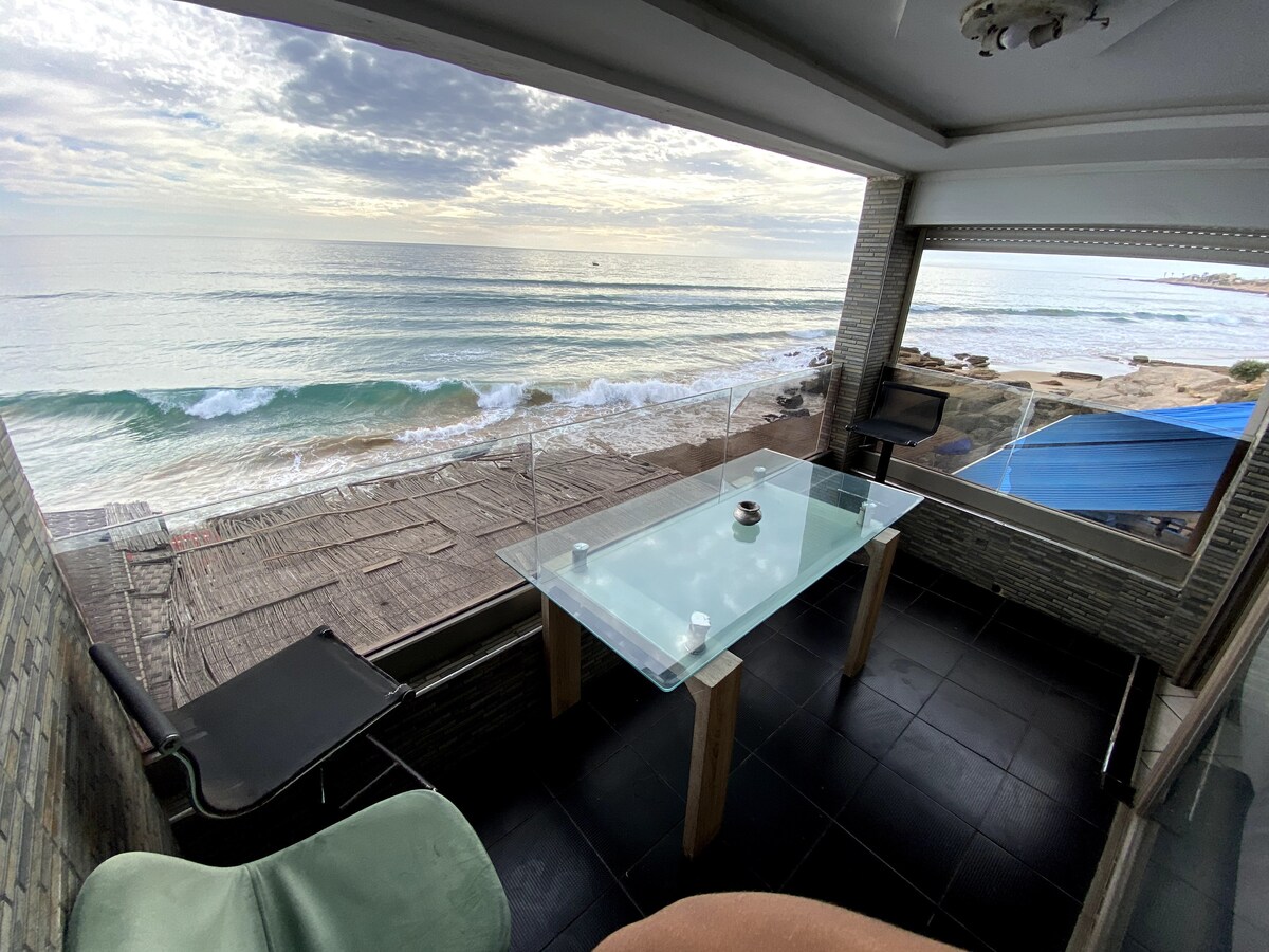 Wake up to the sound of waves, coffee in hand. Step onto your private terrace, breathe in the sea air and let the ocean stretch endlessly before you ✨ HIGHLIGHTS: ★ Direct beachfront with private beach access ★ Panoramic ocean view from a spacious terrace ★ Walk to surf spots, restaurants & local favorites ★ Spacious 2BR ideal for families or groups ★ 100 Mbps optic fiber WiFi & free street parking