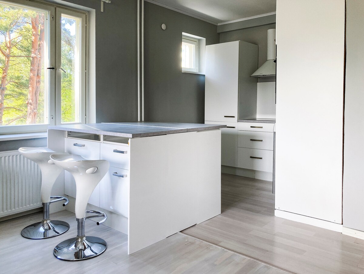 El apartamento, compuesto por dormitorio, cocina y aseo, se encuentra en el edificio del patio, mientras que la ducha está en la planta baja del edificio principal (entrada independiente). En el edificio principal y en el patio hay dos gatos que se mueven libremente. El centro de la ciudad está a unos 4 km, Yyteri a unos 17 km. La tienda más cercana está a 1,2 km.
