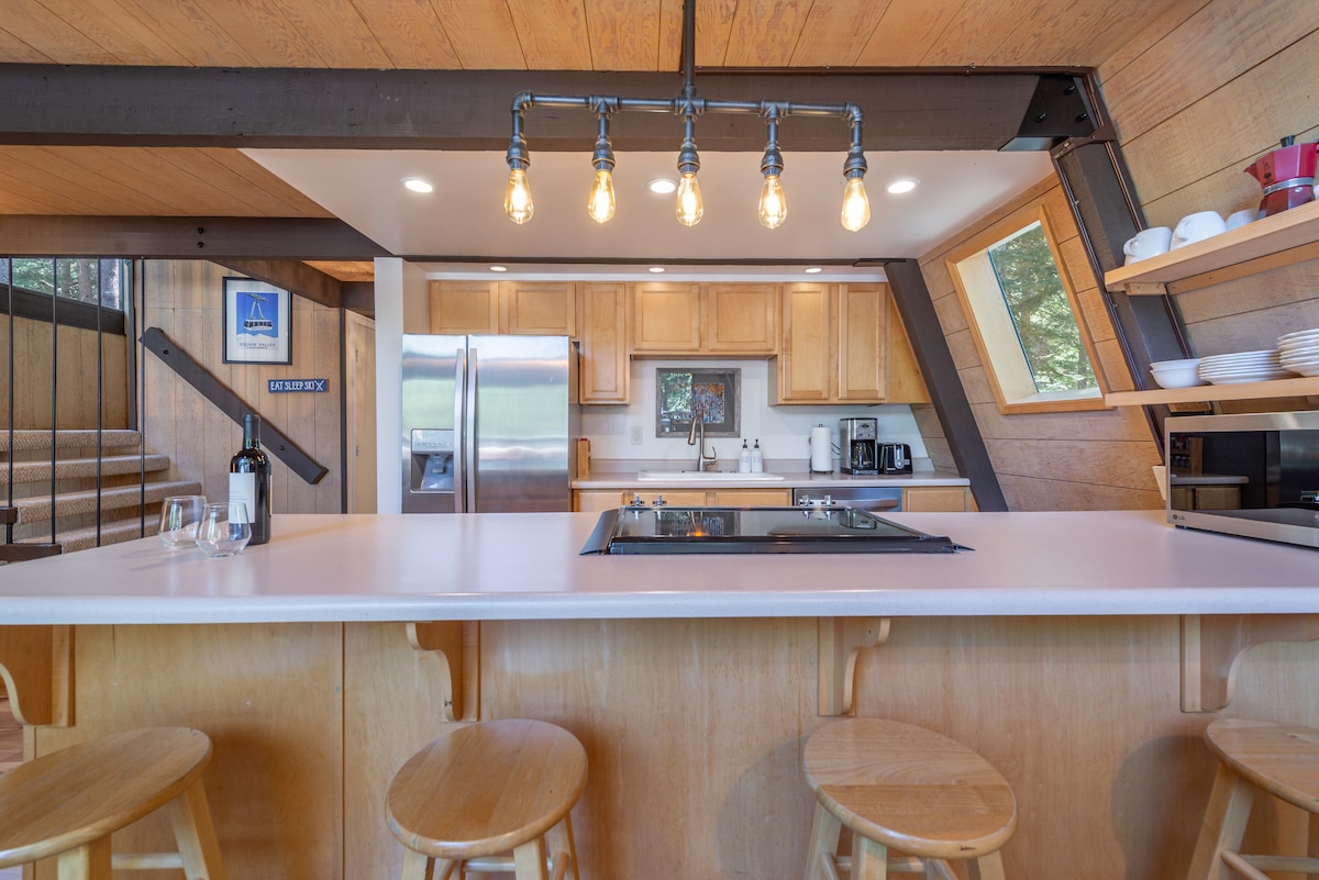 Cabaña triangular en Tahoe Donner con jacuzzi privado y chimenea exterior