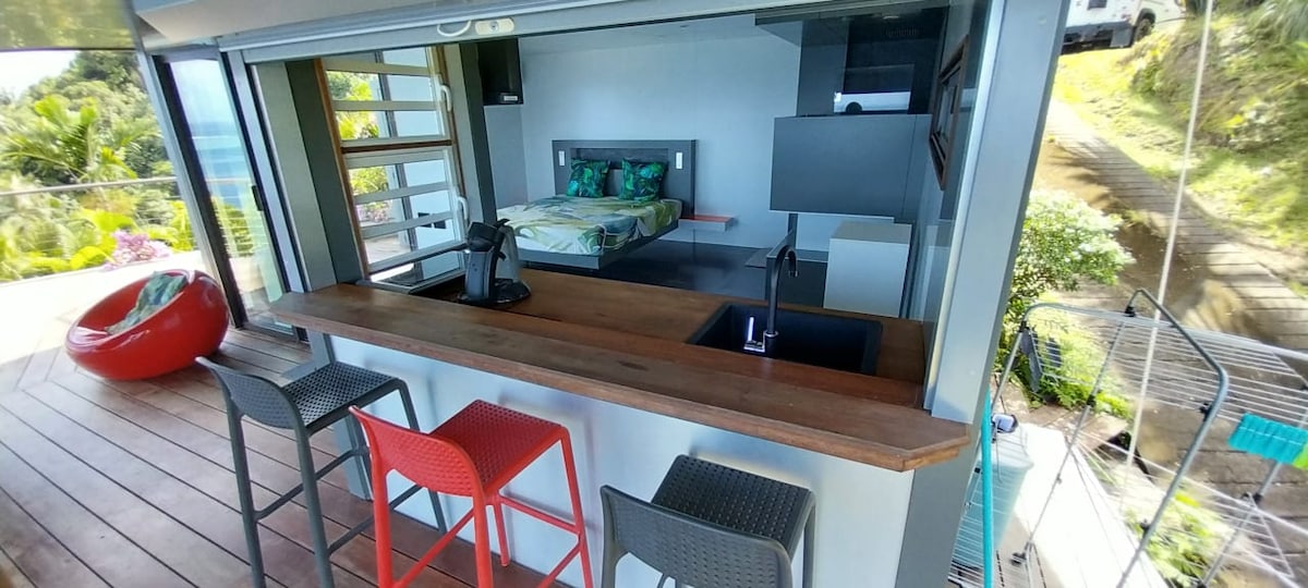 Descubra un remanso de tranquilidad en Vairao, encaramado sobre la legendaria cueva de Maui. Este bungalow con aire acondicionado ofrece una vista excepcional de la bahía de Vairao. Tranquilo y sin vecinos, tiene todas las comodidades necesarias para una estancia agradable. Impresionantes vistas a la bahía con ballenas en temporada (agosto-noviembre). A 8 km de Teahupo 'o, ideal para los amantes del surf y la naturaleza. Entre el océano, la naturaleza y la aventura, bienvenidos al paraíso. - Playa Maui: 500 m - Supermercado: 400 m - Teahupo 'o: 8 km