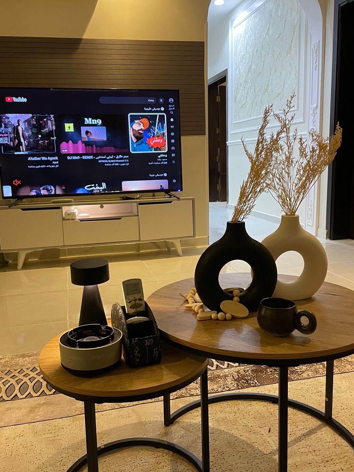 Relájate en este alojamiento tranquilo y elegante. Suite de lujo con vistas panorámicas completas al jardín, con moreras, rosas, rosas y vides, servicio de entrada inteligente, además de una gran pantalla moderna con tecnología UHD 4K con suscripción al servicio iptv, todos los canales del mundo, además de los canales deportivos Bein, Saudi Sports, showtime, Netflix y todas las películas y series. ((y la Copa del Mundo😍)) Hay una mezquita cerca de la vivienda. Cerca del parque Al-Radf, restaurantes, mercados y cafés de lujo. Hay un guía turístico para proporcionar a los huéspedes todos los lugares que vale la pena visitar.