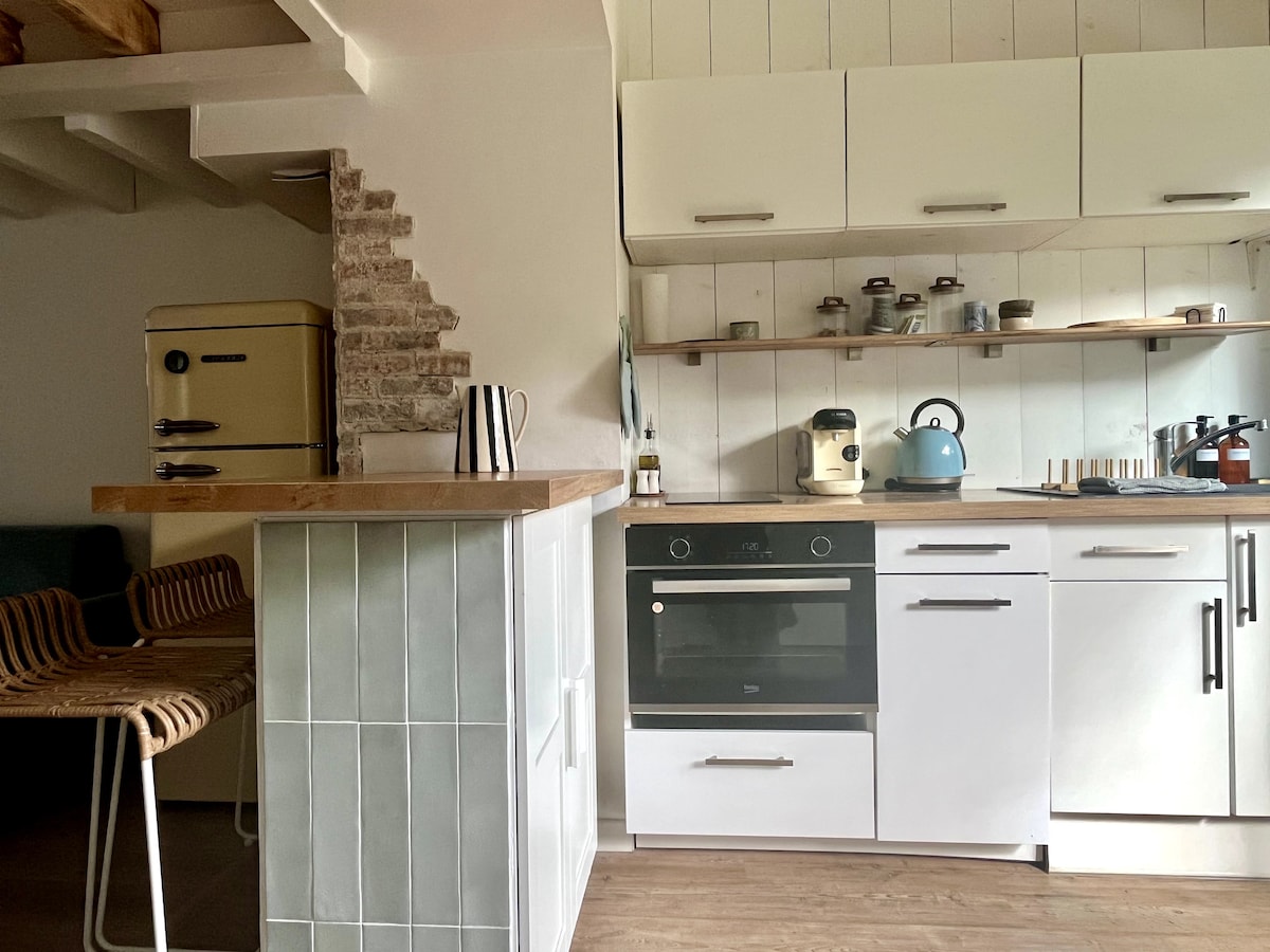Casita recién equipada en nuestro gran jardín. La piscina es compartida. No hay vecinos, incluso si estamos en la misma parcela. Habitación y oficina en la planta superior de su casa rural. Aparcamiento gratuito junto a su alojamiento. Compatible con el trabajo en home office No apto para personas con movilidad reducida y niños pequeños (especialmente con la escalera un poco inclinada).