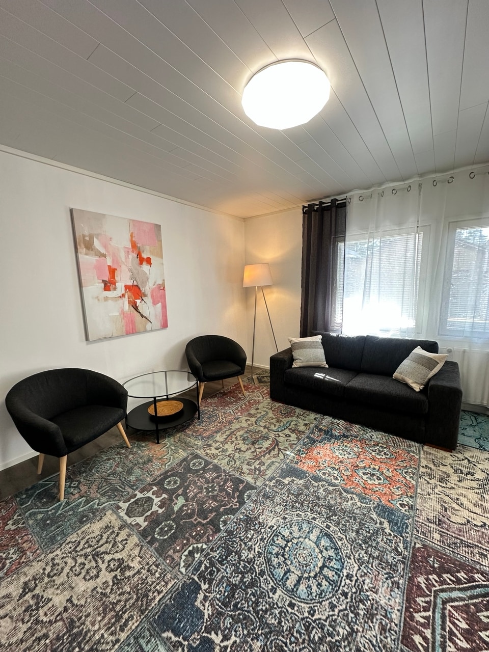 Enjoy this well equipped row house near Skinnarila university campus. You'll also have easy access to nature, including nearby forests and Lake Saimaa. Features: Bedroom Living room Bathroom Kitchen Private sauna Patio 50" 4k Smart-TV Free private parking Wi-Fi Ideal for two people but can accommodate up to four adults. Enjoy the convenience of keyless self-service check-in.