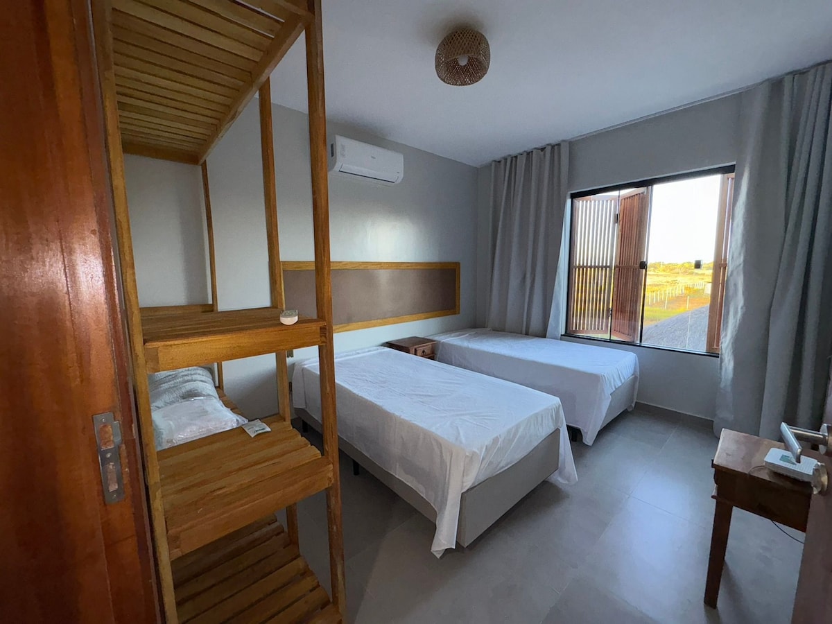 A Casa 302, no Residencial Taipu de Fora, é um refúgio moderno e confortável para até 5 pessoas. Possui dois quartos climatizados, suíte, banheiro, sala integrada à cozinha equipada e sofá-bicama. Sacada com vista para piscina e jacuzzi compartilhadas. Fica a 500 m da Praia de Taipu de Fora, com acesso exclusivo e próximo ao centro de Barra Grande. Serviços extras como limpeza e café da manhã sob solicitação. Ideal para relaxar e curtir a natureza.