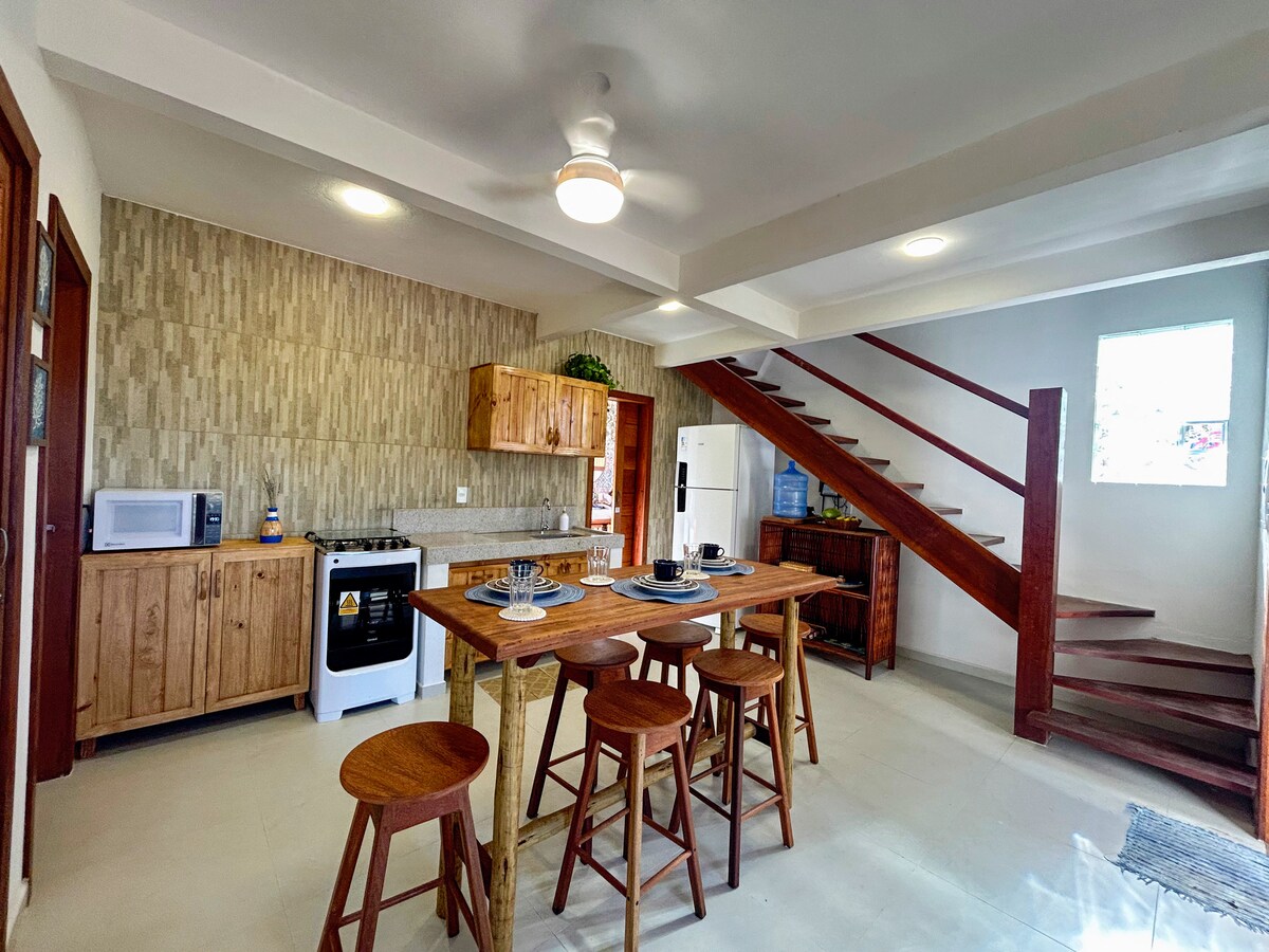 Una casita construida y decorada con mucho cariño. Encantadora, cómoda, acogedora, cerca de la hermosa playa de Bombaça. Cuenta con cocina bien equipada, hamacas, aire acondicionado, ventilador de techo, además de área de servicio con lavadora. Situado en un condominio cerrado, con lagos y mucha vegetación, es un lugar de naturaleza exuberante, silencio y privacidad. Aquí te despiertas con el canto de los pájaros, y escuchas el ruido del mar en cualquier momento. Perfecto para aquellos que quieren relajarse y dejarse encantar.