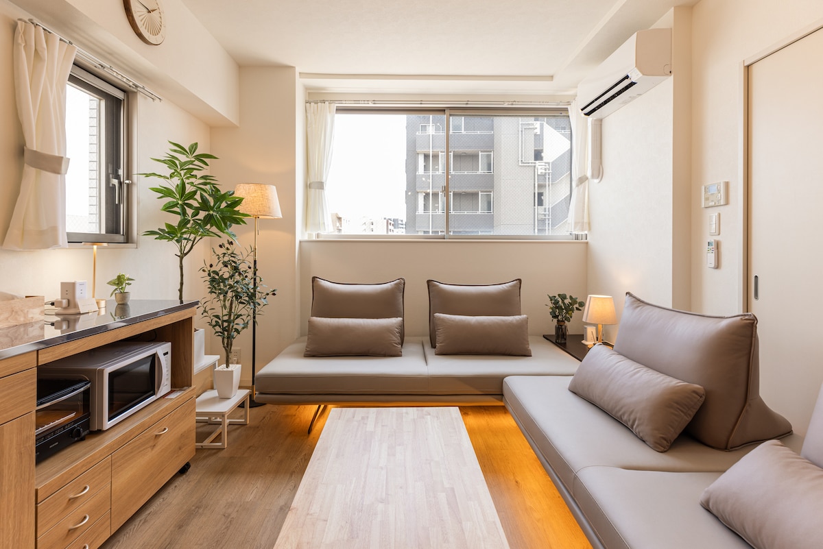 Estudio Japandi tranquilo y nuevo|Cerca de JR・metro|Lavadora y secadora|Ascensor|Almacenamiento de equipaje
