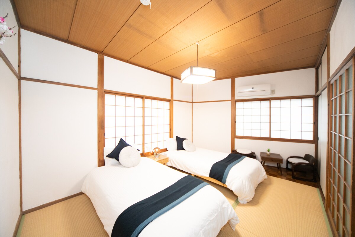 [Jardín japonés] 3 minutos de la estación | Casa retro de 100 m² con tatami | Hasta 11 personas | 6 camas | Aparcamiento gratuito | 30 minutos de Namba