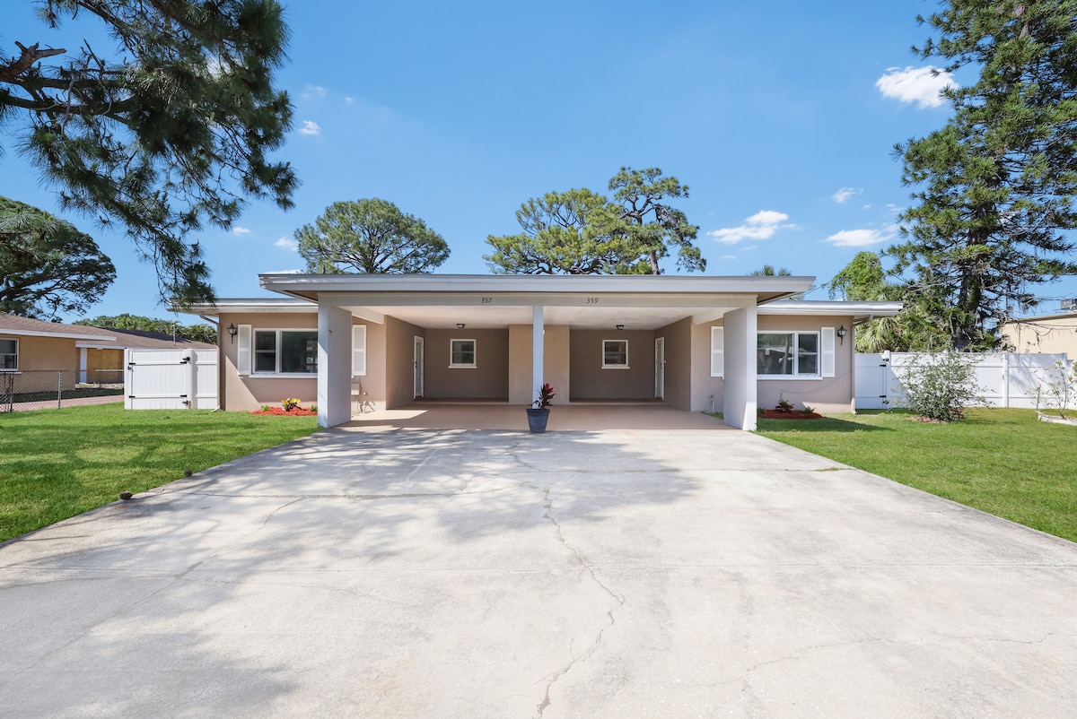 Refugio de mediados de siglo en Florida (baño completo + ducha al aire libre)