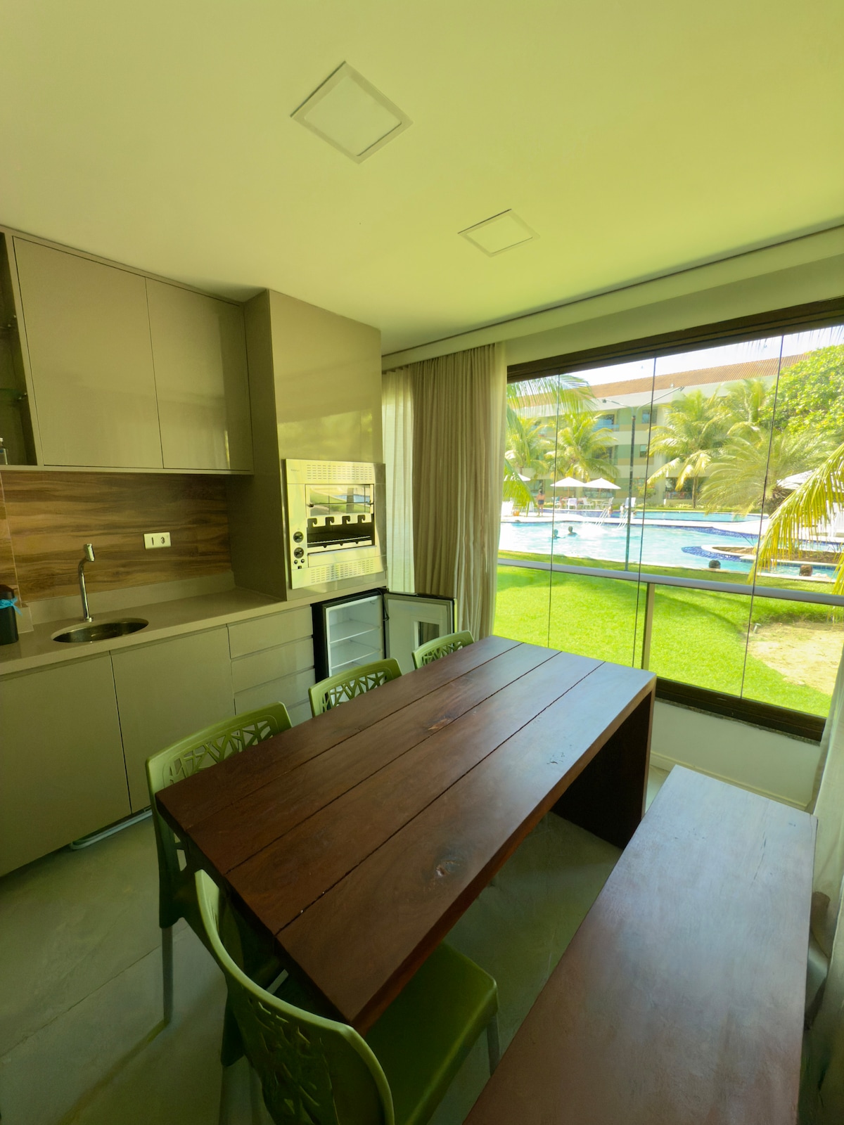 Located in Club Meridional, on the beachfront in Praia dos Carneiros, the apartment is pet-friendly and features: - 2 bedrooms: a double bed and a bunk bed with complete linens and a sofa bed in the living room; - Guest bathroom; - Air-conditioned rooms; - Equipped kitchen: two refrigerators, water purifier, air fryer, electric grill, sandwich maker, electric oven and other utensils; - Wine cellar [wine list]; - Coffee station (complimentary); - Smart TVs: with streaming channels