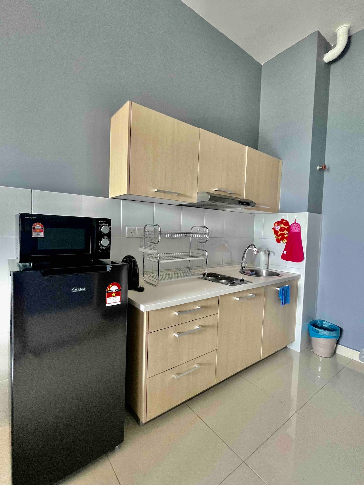 @ Spacious Lakeview Studio Unit. @ piso alto con impresionantes vistas al lago Putrajaya. Televisión inteligente de 45pulgadas instalada con Netflix, Disney+ Hotstar y YouTube. Todo el acceso es gratis. @ Conexión WIFI de banda ancha de alta velocidad. Nevera, horno microondas, freidora de aire, fogón, hervidor de agua y utensilios de cocina para uso básico en la cocina. @ Lavadora con área de secado. @ Cómodo colchón tamaño king. @ Baño limpio con ducha caliente. @ Instalaciones del club @ Filtro de agua Cuckoo @ Entrada con cerradura inteligente