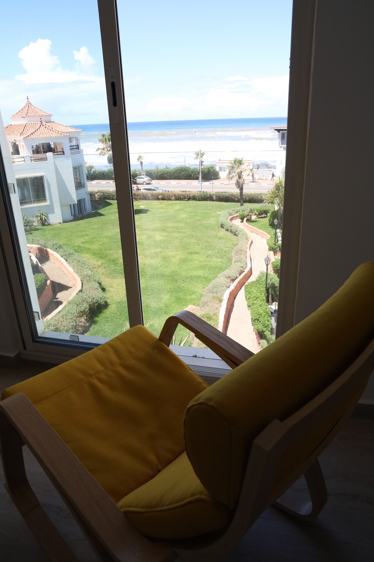 Vue mer, détente & bien-être à Dar Bouazza. Profitez de cet appartement spacieux de 125m² avec grande terrasse face à l'océan, à 2 minutes à pied de la mer. Deux chambres ensoleillées, vaste salon confortable, cuisine équipée, salle de bain avec douche à l'italienne. Climatisé et insonorisé. Accès à une salle de sport, deux piscines dont une couverte et au jardin de la résidence. Jack Beach à 1 km. Surf, équitation et balades en mer à proximité.
