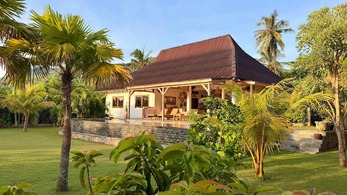 Villa elegante y exuberante, tranquila Lombok