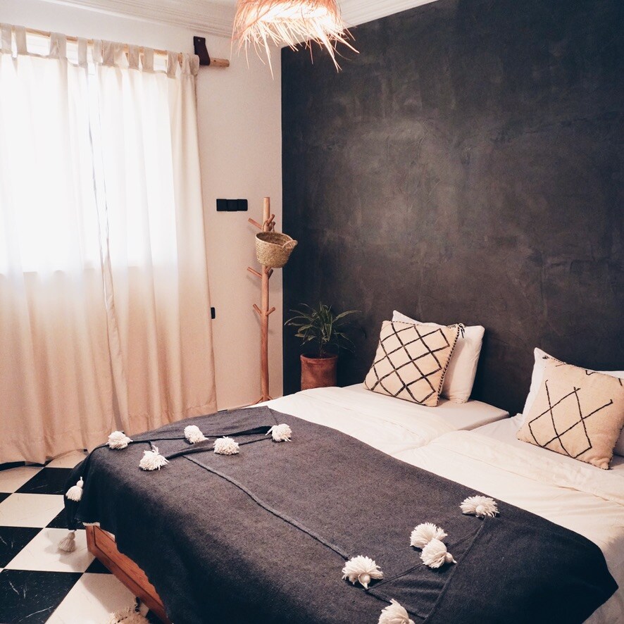 Este elegante lugar con vistas al mar está cerca de la playa y de todos los servicios de Taghazout. Fácil acceso con estacionamiento en la calle y encima de una cafetería con un espacio de trabajo cooperativo y wifi de fibra óptica y comida saludable. El desayuno está disponible para pedir por un cargo adicional. Todas nuestras habitaciones son cómodas, con ropa de cama de calidad y sin literas.