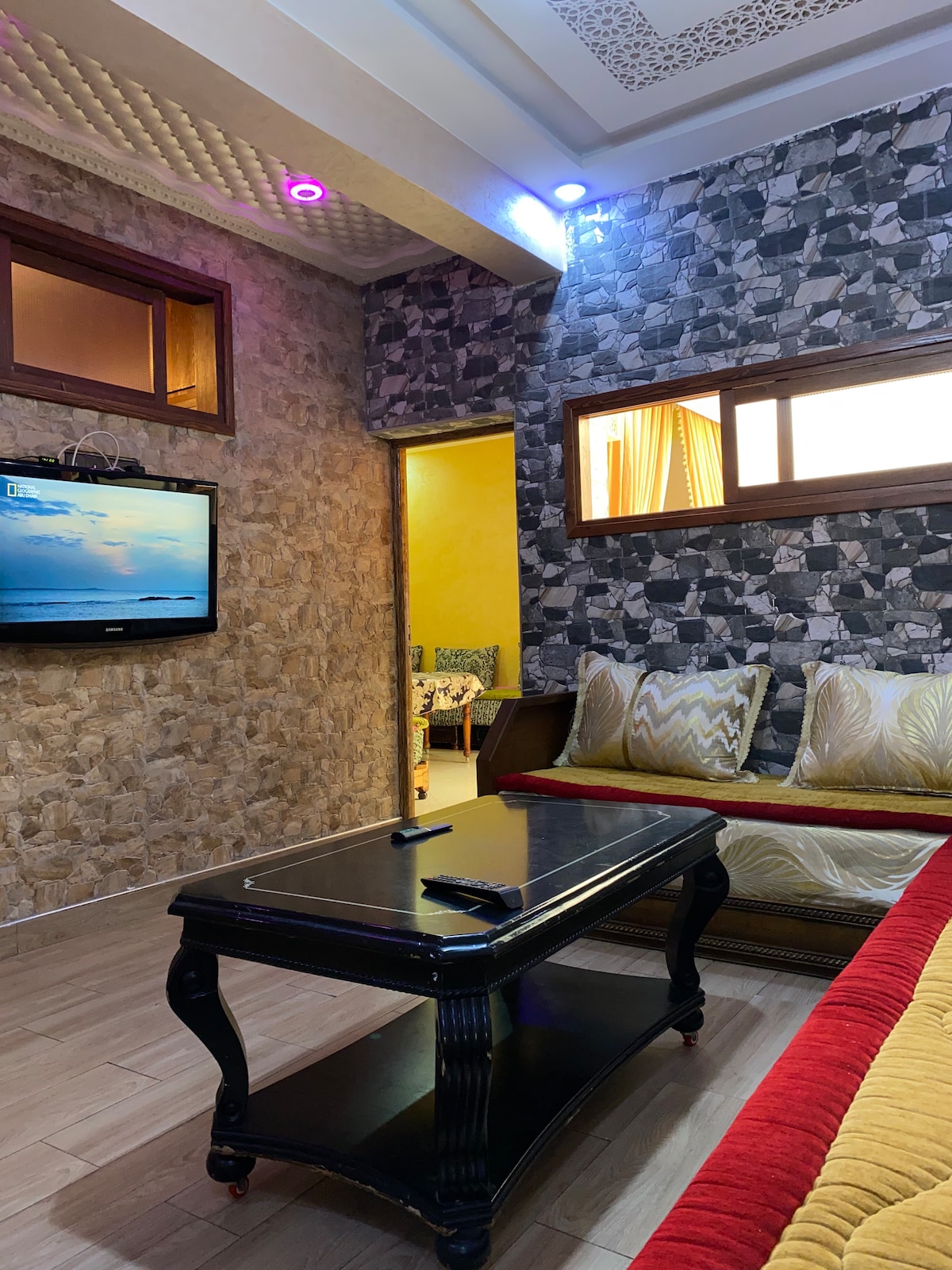 Según la ley marroquí, no se permiten parejas marroquíes solteras. Mi departamento cuenta con un amplio balcón y es uno de los más cercanos a la playa de la zona. Convenientemente ubicado en la carretera principal, tendrás fácil acceso a atracciones, tiendas y restaurantes locales mientras disfrutas de la relajante brisa del mar. ** Ofrecemos servicio de recogida y traslado al aeropuerto, y actividades turísticas. **