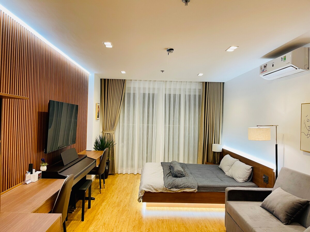 El apartamento es adecuado para huéspedes y familias que combinan viajes de negocios y vacaciones. Ofrece a los visitantes la sensación de alojarse en un hotel elegante pero disfrutando de un ambiente familiar. - Cama tamaño king de 1,8 x 2 metros de ancho y 1 sofá cama de 1,8 x 2 metros de ancho para una familia de 4 personas. - 2 mesas de trabajo, 1 piano, TV de 58 pulgadas con más de 100 canales gratuitos: Netflix, HBO, Max, deportes. - Zona de cocina, mesa de té + mesa de comedor, minibar, nevera, lavadora. - Piscina gratuita. - A 5 minutos del aeropuerto.