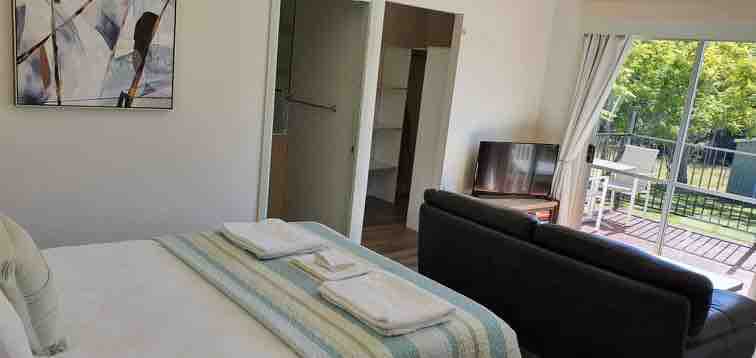 Situado en el punto ideal entre Pomona, en el interior de Noosa, y la bulliciosa ciudad histórica de Gympie, estarás cerca de todo, pero lo suficientemente lejos como para olvidarte de todo. Muy fácil de llegar... a solo minutos de la M1, pero totalmente tranquilo. Imagina una escapada al campo rodeada de los hermosos cantos del pájaro látigo, mientras te sientas en tu propio patio privado con vistas a la selva tropical de Tandur. El Retiro está completamente separado de la casa principal (a 50 metros de distancia) por arbustos, por lo que tu privacidad está garantizada.