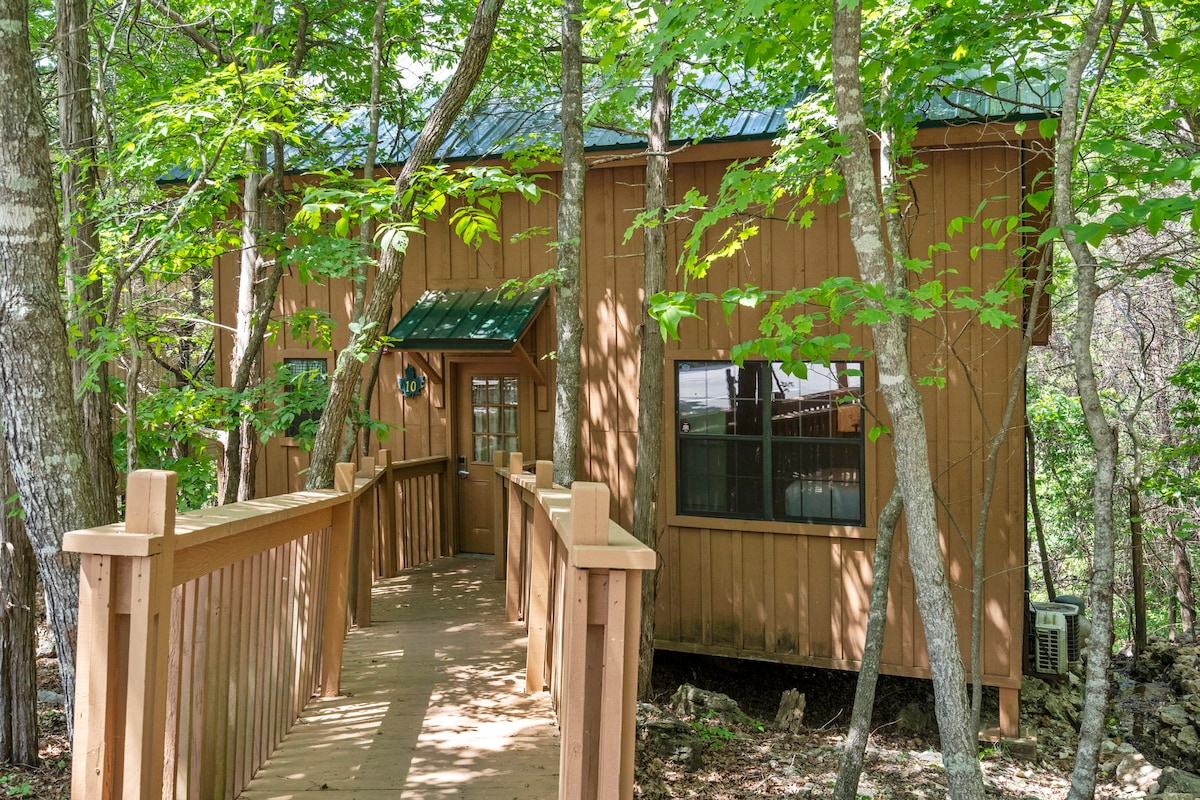 Indulge in the private luxury of a real wood cabin on a quiet cul-de-sac in the heart of Branson. WELCOME to your private slice of luxury in our cozy one-bedroom cabins. This cabin comes with modern amenities, a kitchenette and 450 square feet of private space. Deer, turkey and wildlife can be seen while you relax on the front porch. And yet, you are only five minutes from shopping, attractions, dinning and shows. Ready to secure your experience in a REAL cabin? Then book your stay NOW!