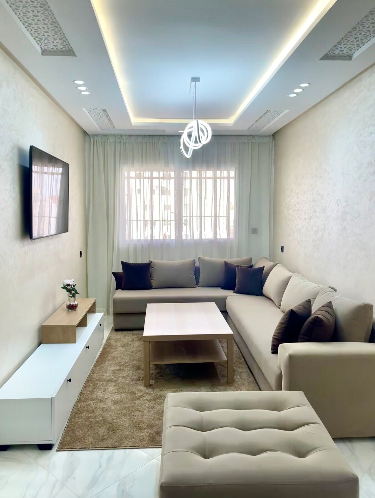 ✨️LE GLORIOUS✨️ Relájese en este alojamiento tranquilo y elegante. Bonito apartamento a dos pasos del GRAN ESTADIO de Tánger Agradable y relajante, el apartamento consta de un elegante salón soleado con un dormitorio (cama nueva 180) El baño está limpio y es funcional Perfectamente equipado, tranquilo e impregnado de un ambiente acogedor, será el punto de partida ideal para los viajeros de negocios y placer