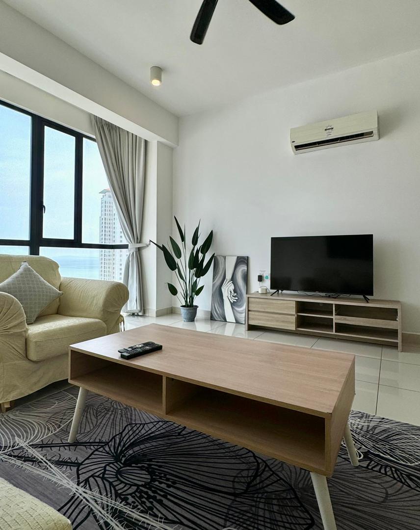 El único alojamiento de lujo a lo largo de la playa de Batu Ferringhi con acceso directo a la playa, literalmente solo tienes que salir del apartamento para disfrutar del mar, la playa y las actividades acuáticas. Breezy 2 dormitorios para 5 adultos: 1 cama king size, 1 cama queen size y un sofá cama en la sala de estar. Piscina frente a la playa, gimnasio moderno, parque infantil Wifi gratuito y TV con cable, estacionamiento La mejor ubicación para explorar la zona de Batu Ferringhi y a poca distancia a pie a restaurantes locales, bares, spas, galerías y restaurantes occidentales
