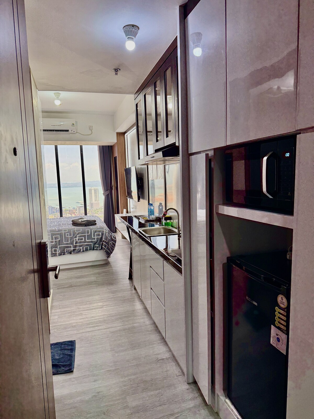 Apartamento de 1 dormitorio totalmente amueblado que se encuentra encima del centro comercial frente a la bahía y la terminal de transbordadores de Harbour Bay. A 2-3 minutos a pie del vestíbulo del apartamento a la terminal de transbordadores. A 2 minutos a pie de cafeterías como Starbuck y a 5 minutos a pie de un restaurante de marisco. Servicios de seguridad las 24 horas. Hay mucho entretenimiento alrededor de la zona de Harbour Bay, como karaoke, bares y cafeterías. El centro comercial Nagoya Hill está a solo 10 minutos en coche. El centro comercial Grand Batam y BCS está a solo 15 minutos en coche.