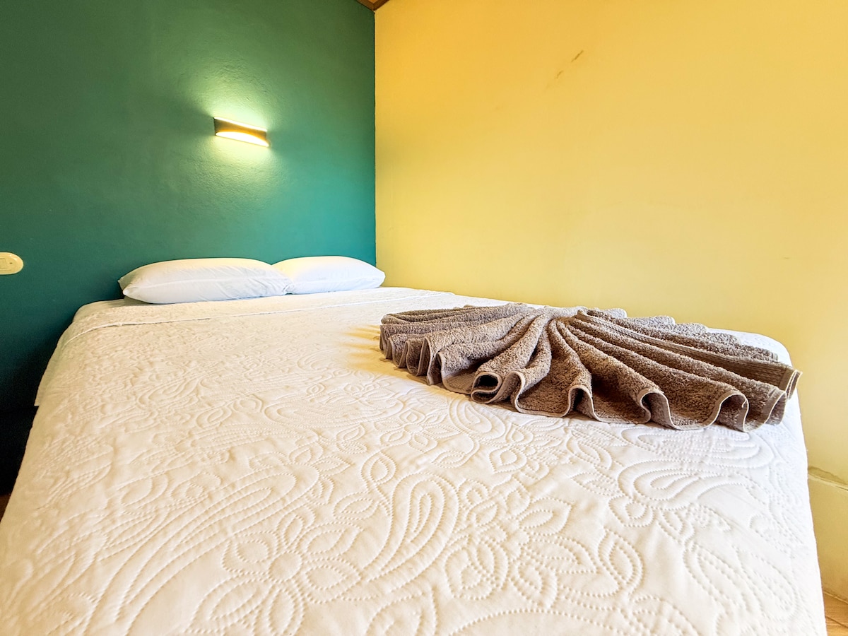 Un lugar acogedor, que te genera TRANQUILIDAD y SEGURIDAD. Ideal para pasar tiempo con tus seres queridos. Está ubicado en Naranjito de Quepos, una zona muy tranquila. El bungalow cuenta con todas las facilidades, la cocina está equipada, Cuenta con a/c en el dormitorio principal y con wifi en el 100% del espacio. El cuarto principal tiene una cama King y el mezanine cuenta con 1 cama matrimonial , sofá cama y ventiladores. Contamos con TV con cable y otro TV con chromecast. Entre otras.