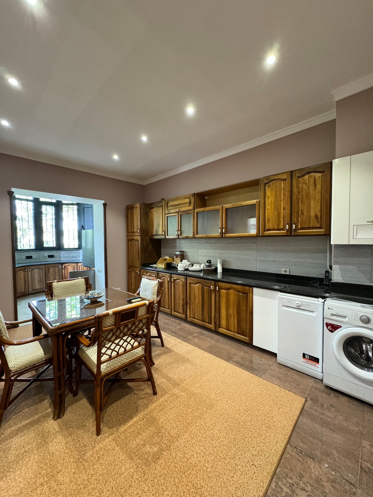 Disfruta de la elegancia de alojarte en este alojamiento de diseño moderno. Bellamente decorado, con 4 dormitorios y 3 baños. Hay un baño en la casa y 2 en el área del jardín en la parte trasera. La casa está climatizada en el centro para las noches frías y refrigerada para el verano. La supertienda de Korzinka está a poca distancia. ¡Los restaurantes turcos y uzbekos también están a un minuto! Solo se admiten familias Nota: ¡La hora de salida es a las 12 p. m.! El registro de entrada es a las2:00 p.m. ¡El registro de policía no está incluido!