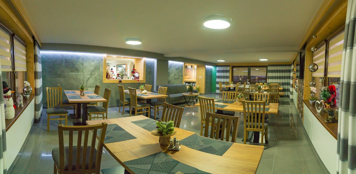 Un lugar ideal para familias, situado en el centro. En nuestra oferta encontrarás habitaciones modernas y elegantemente decoradas para 2, 3 y 4 personas con balcones, baños, TV, acceso a Internet, cocina americana (= placa de inducción de dos fuegos, microondas, nevera, hervidor eléctrico, cubiertos, vajilla) y almacenamiento de equipo de esquí. Además, en las instalaciones hay un gran jardín con parque infantil y aparcamiento para coches.
