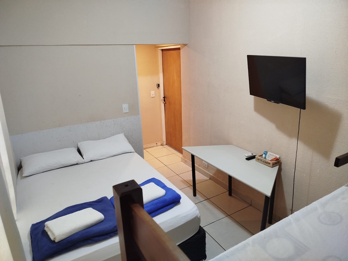 Kitnet 111 ar cond, roupas cama, tv frigobar wifi