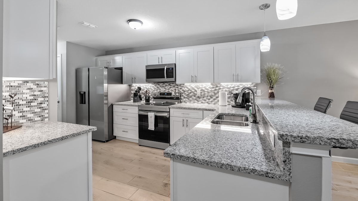 This newly constructed unique and cozy home sits in the heart of lakes near downtown, shops, restaurants, and breweries. It is surrounded by greenery that lets you relax and wind down in a tropical backyard. It is within walking distance to the lake beach, biking trail, splash pad, and playground. There are plenty of activities for you to enjoy!