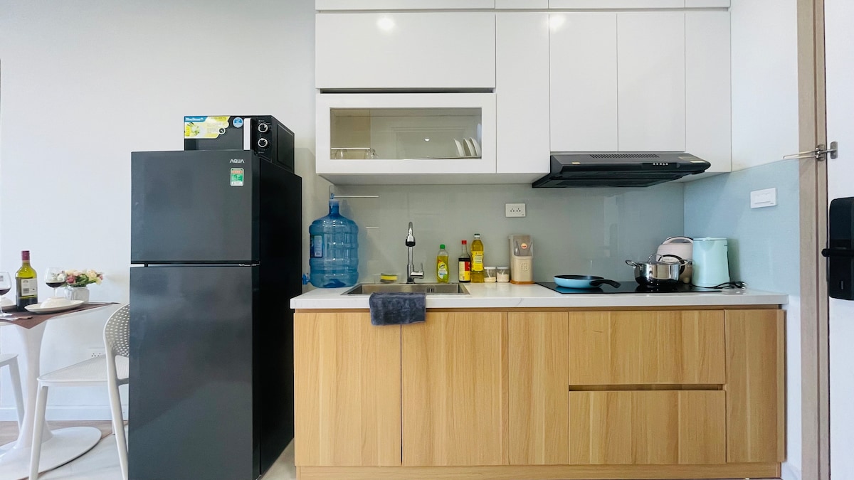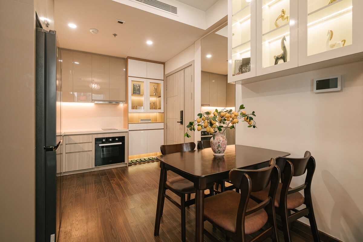 El apartamento está lujosamente diseñado, moderno con espacio abierto, vistas poéticas tanto del lago como de la brillante ciudad. Cocina totalmente equipada con utensilios de cocina básicos, horno conveniente, listo para comidas deliciosas. Puedes relajarte con el televisor de pantalla grande disponible Netflix o disfrutar de una copa de vino en tu propio espacio acogedor. En particular, también tienes acceso gratuito a una moderna piscina y gimnasio en las instalaciones, lo que te ayuda a mantenerte activo y relajante durante tu estadía.